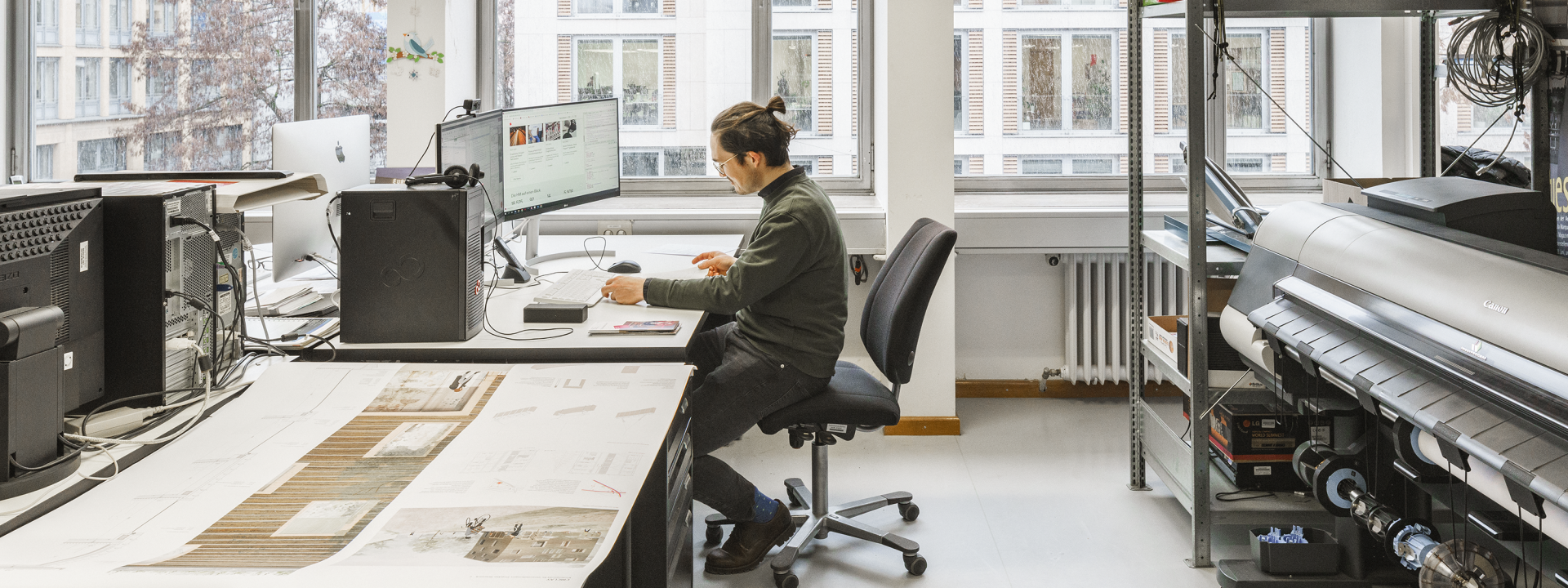 Den Studierenden werden auf Anfrage Plotter und Digitalkamera zur Verfügung gestellt. Darüber hinaus erhalten die Studierenden hier Pläne des Stadtgebiets München sowie des Freistaates Bayern.